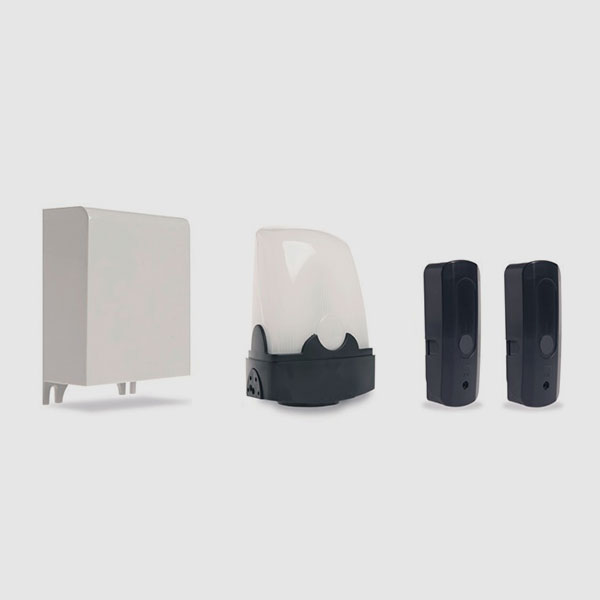 This feature really speeds up installation time. A control unit, photocells, sensitive safety edge and a flashing light make up a complete system, based on totally wireless transceiver technology; ideal for bringing existing systems up to date or for setting up new ones. The control unit is linked to the operator's control panel while the other modules communicate with the unit via radio.